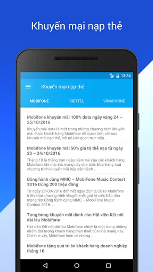 • Constantly updated promotional information Mobifone, Viettel, Vinaphone upcoming and ongoing promotions such as recharge 50% to 100%, the promotional calls and messages. Especially promotional 3g data packets crisis.