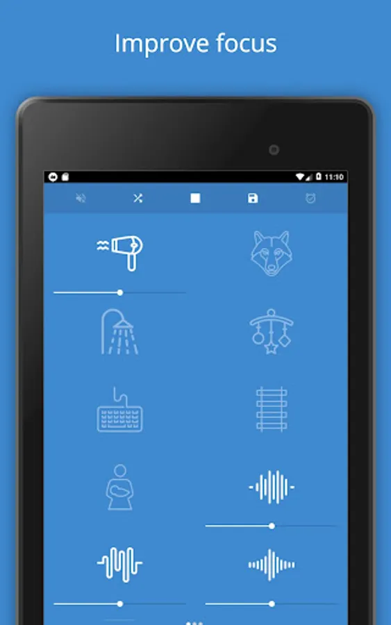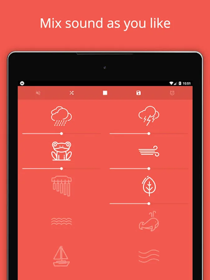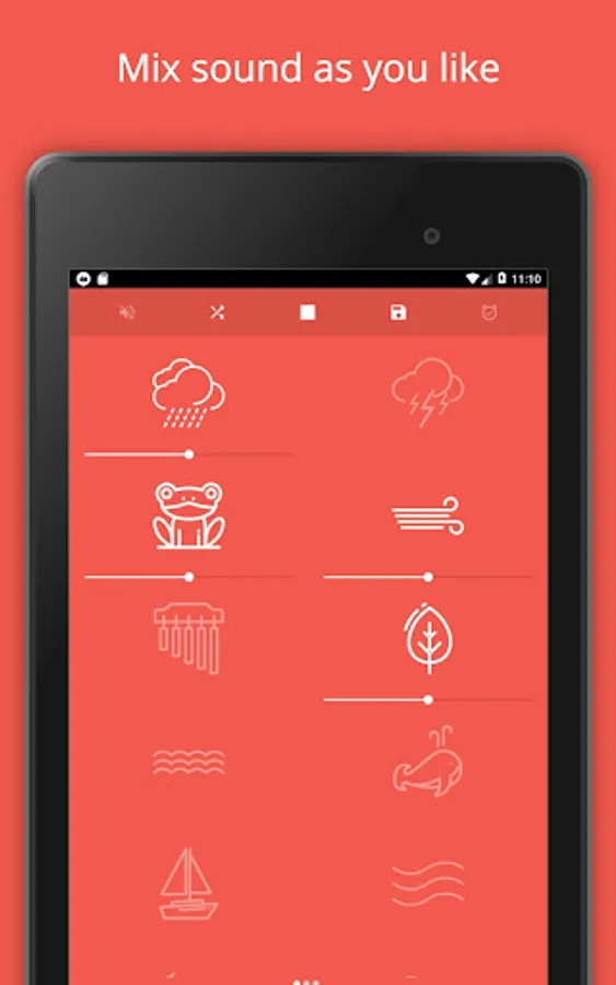 This app support you to create your favorite White Noise by selecting and mixing some sounds of Rain, Thunderstorm, Wind, Forest with Birds, Water Steam, Seaside, Fire place, Summer Night... This app also support you to adjust the volume of certain sound