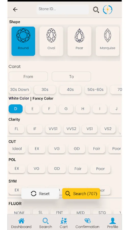 3. Enhanced Diamond Search: Utilize our advanced search filters to refine your diamond selection based on your preferences. Filter by shape, carat weight, color, clarity, and cut to narrow down the options that align with your specific requirements. Explore diamonds that match your desired characteristics