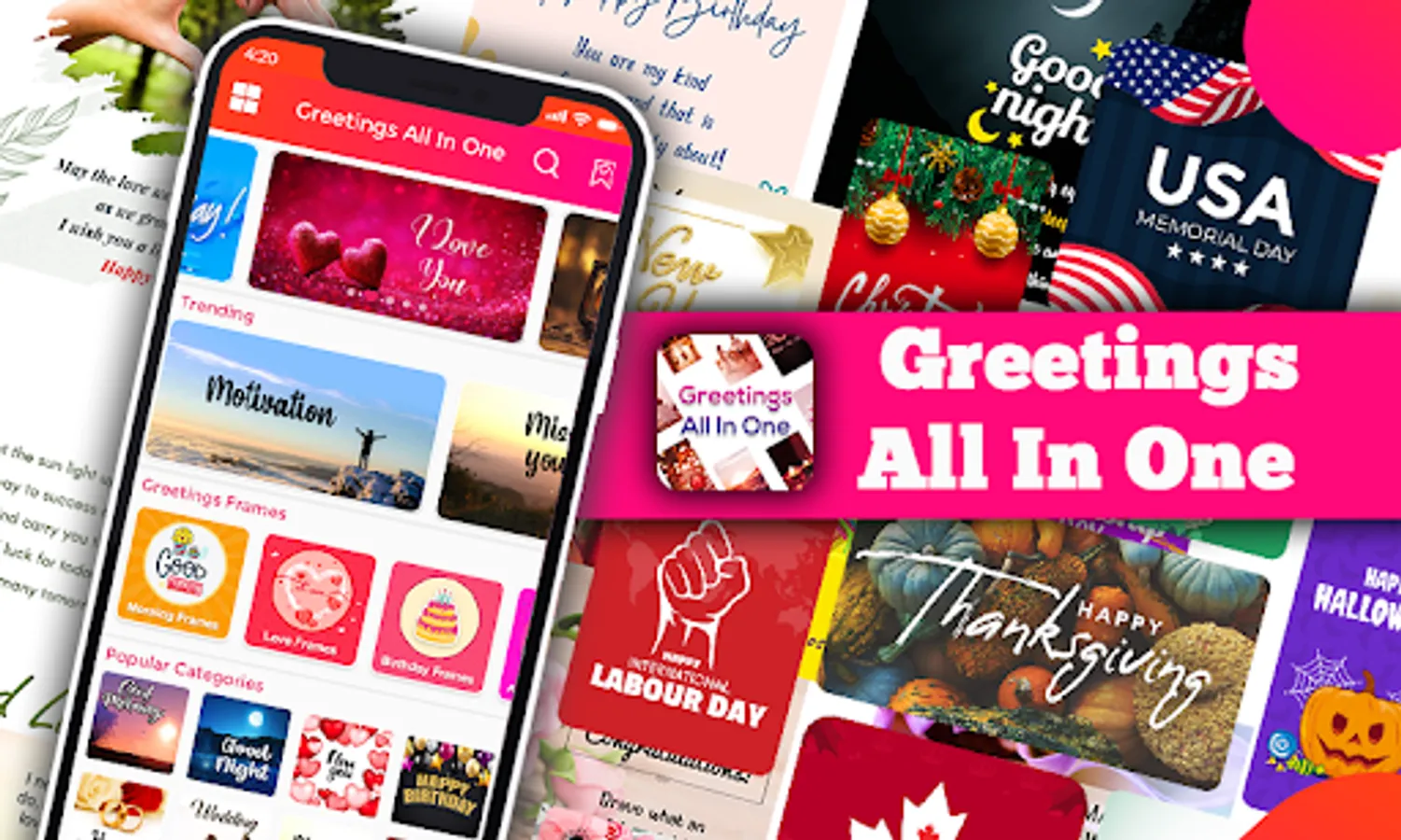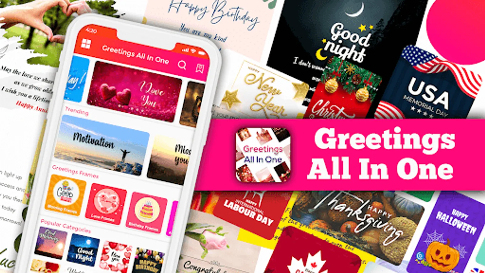 Greetings All in one is the app that provides you Good morning, Good Night, Love, Happy Birthday, Anniversary, Happy Wedding, Miss you and Special Occasions, Festivals Greetings, Wishes, Cards, Gifs, and text Messages.