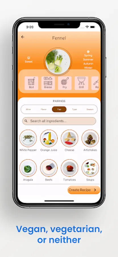 Start by keying in your chosen ingredient. The app instantly dives into its vast database and presents you with a multitude of remarkable combinations that would work together. Moreover, each ingredient brings along valuable information, such as its taste profile, the season it's best used in, and type.