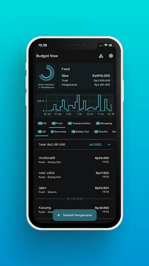 Tracking your expenses becomes more enjoyable with our interactive graph. Visualize your spending patterns over the month, so you can quickly identify areas where you need to cut back.
