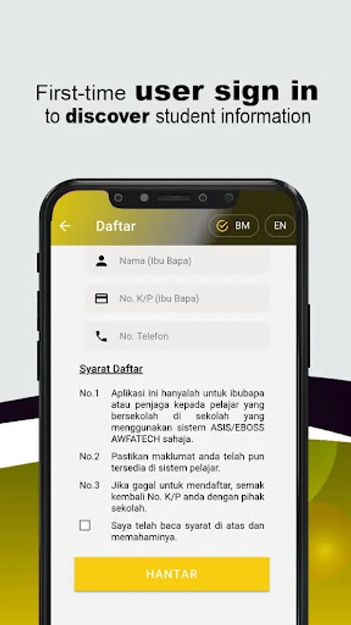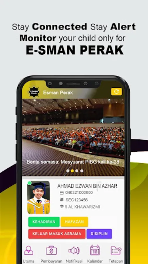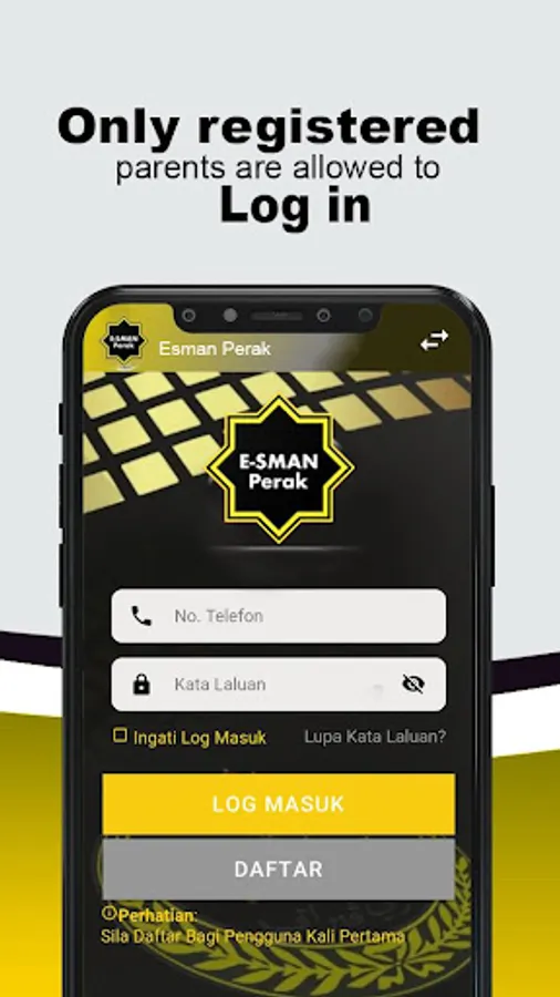 ESMAN is an interactive application created for all parents with APPCODE given by the school in Perak State. It is an alternative for registered parents to interact with schools more conveniently on student's performance & activities