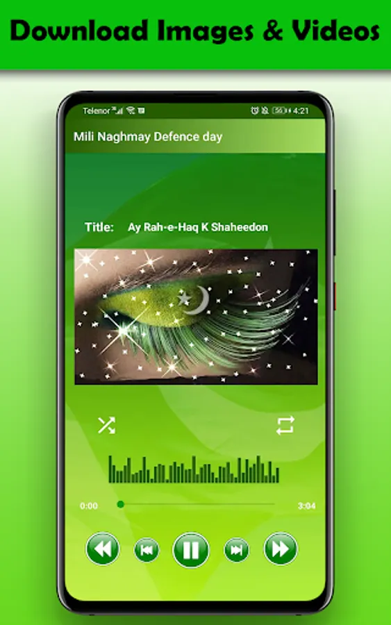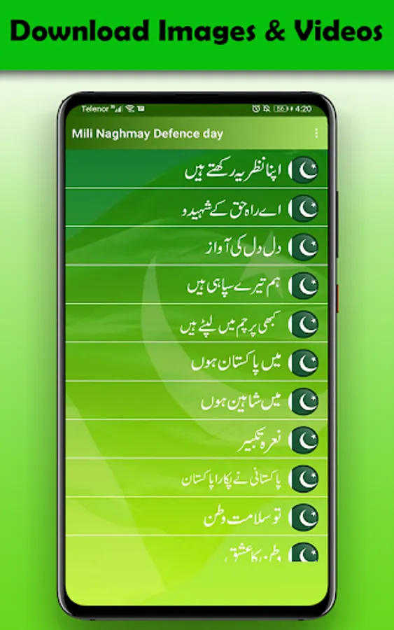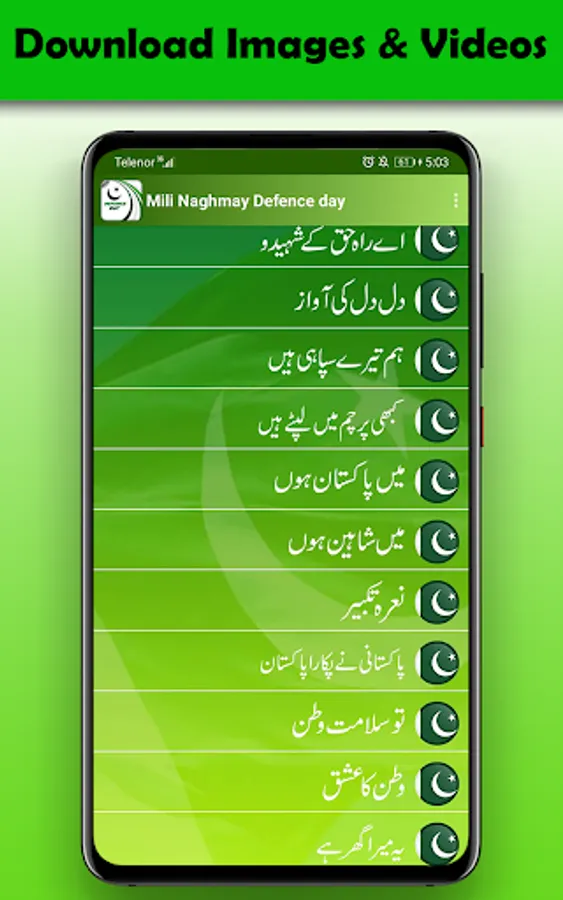 Mili Naghmay Defence day 2020 new type of faster inspiration for user.Every celebration seems deficient without the tinge of national songs. Qoumi Azadi milli naghmay audio play is offline and hence free to listen for all so enjoy it with full of spirtual excitement.Mili Naghmay Defence day 2020 explore the national songs collection and play world's best songs with audio mp3. The national anthem and emotional naghmas audio listening app can share nationwide to have a real strong spirtual bonds with others.Mili Naghmay Defence day 2020