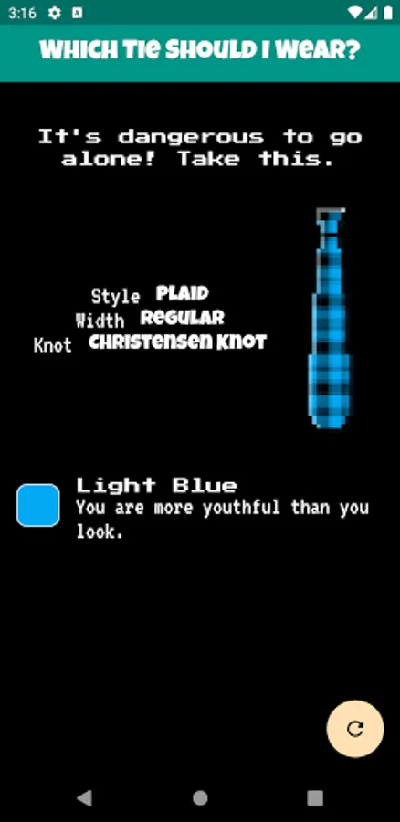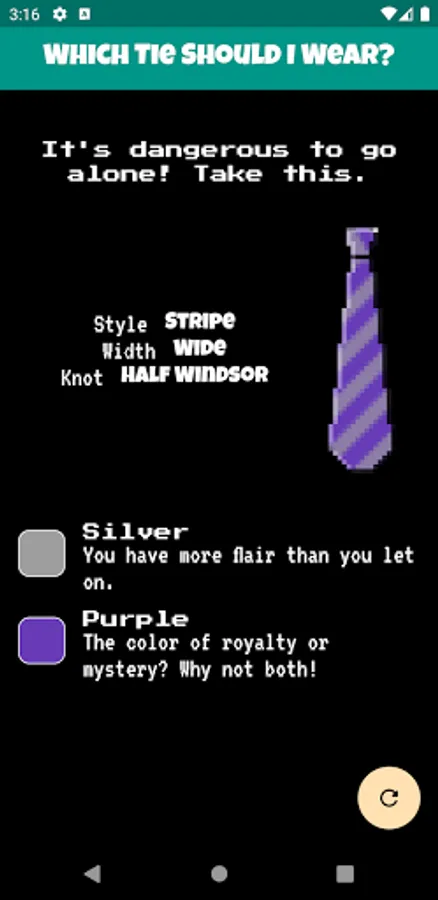 Too many ties in your closet? Not sure which one to choose? We know it can be stressful. Put the stress on us instead. We'll pick out the perfect tie for you in no time. Don't have those particular colors? No problem! Hit the randomize button until you do.