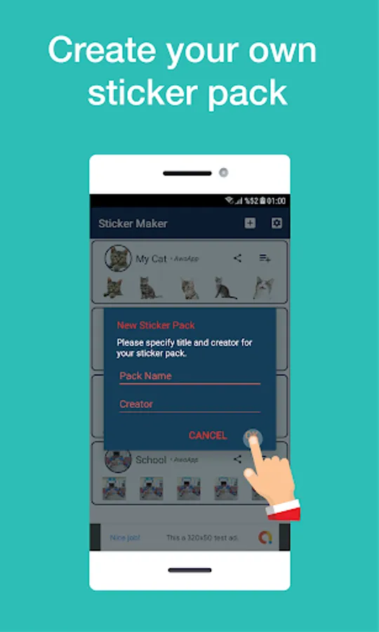 2. Enter a name and creator for your pack and click the ok button to choose an icon from gallery or files