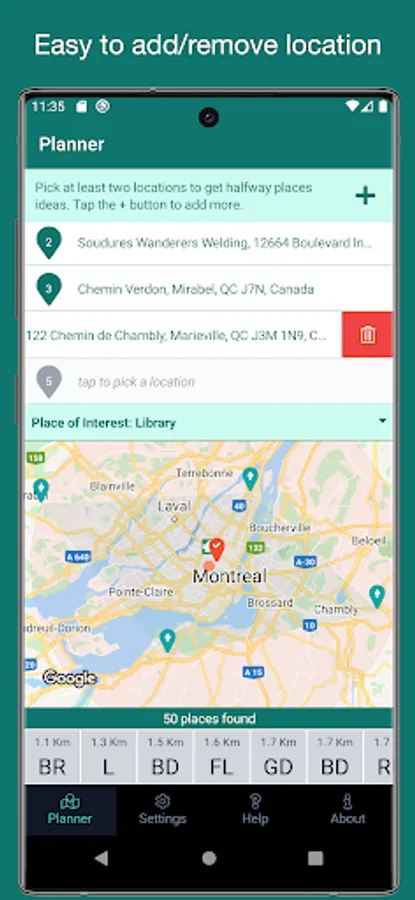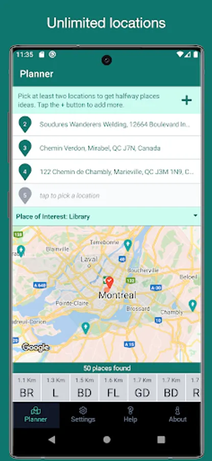 Pick a fair place of interest halfway between two or more addresses. Whether you are meeting a faraway friend or your business contact, let Meedol find your meeting place and save time and gas money.
