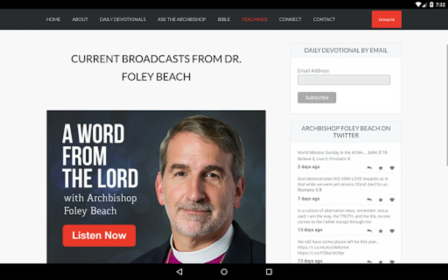 • Daily Devotionals with One-Minute Messages by Archbishop Foley Beach and Bible Readings, including Archives by Category and Date