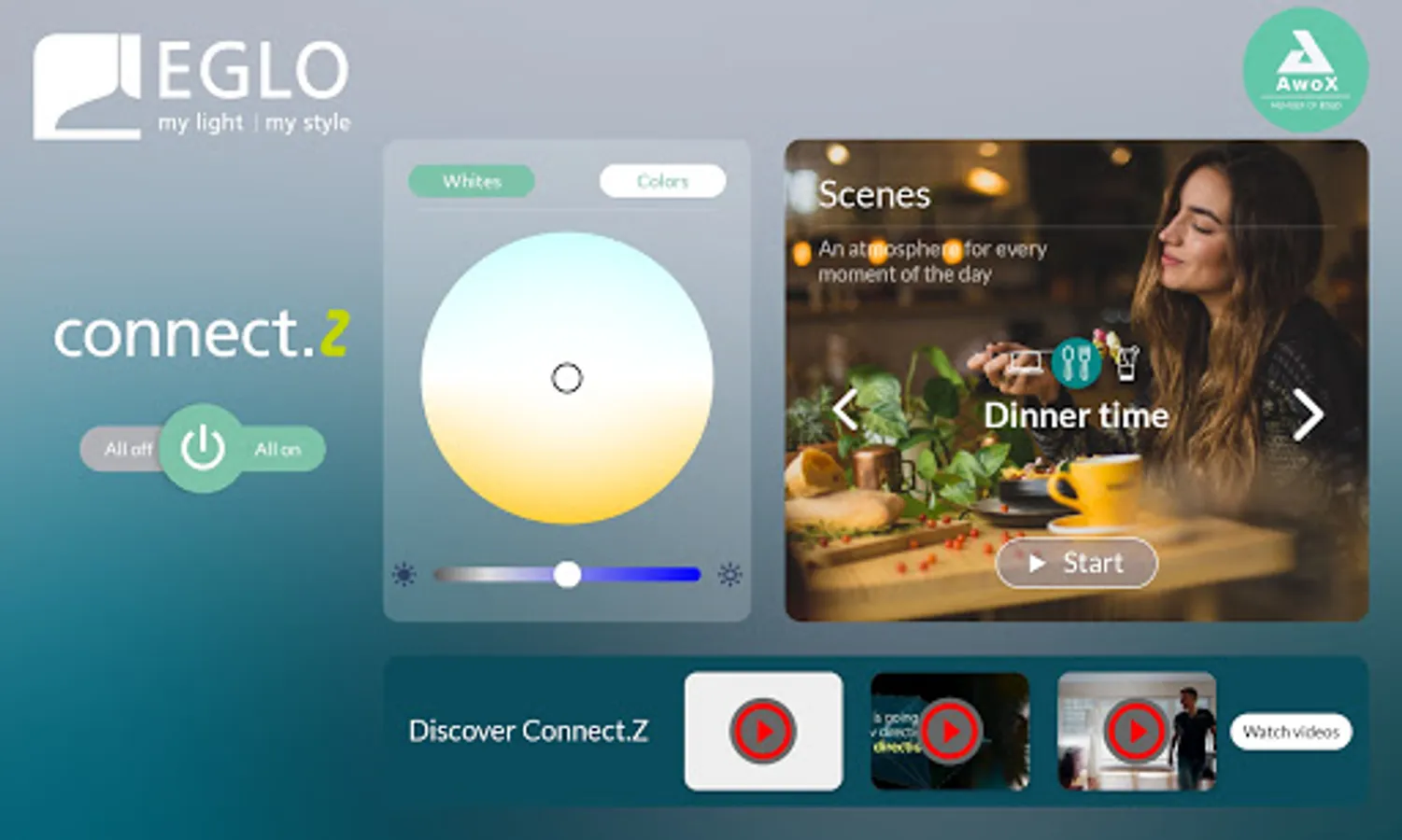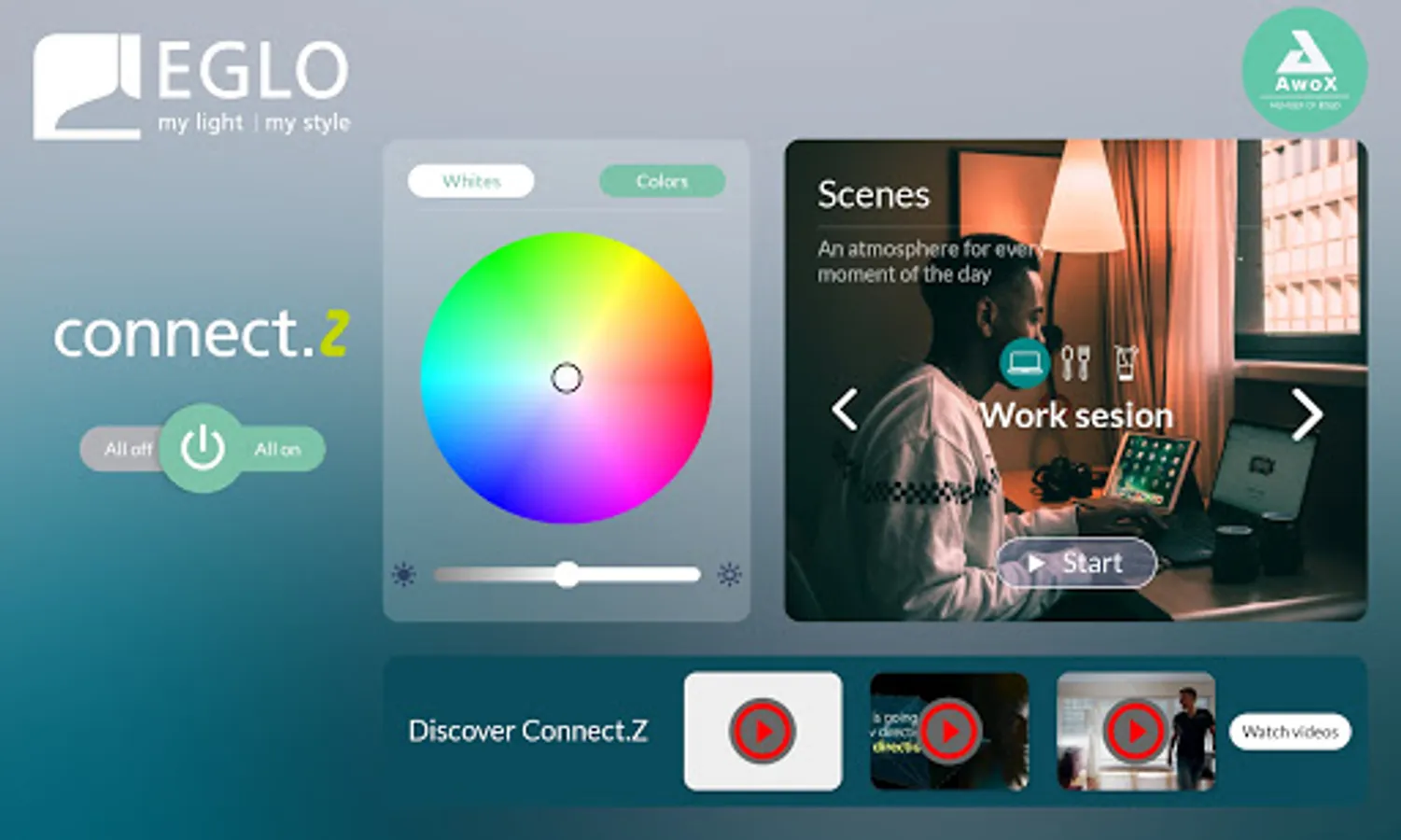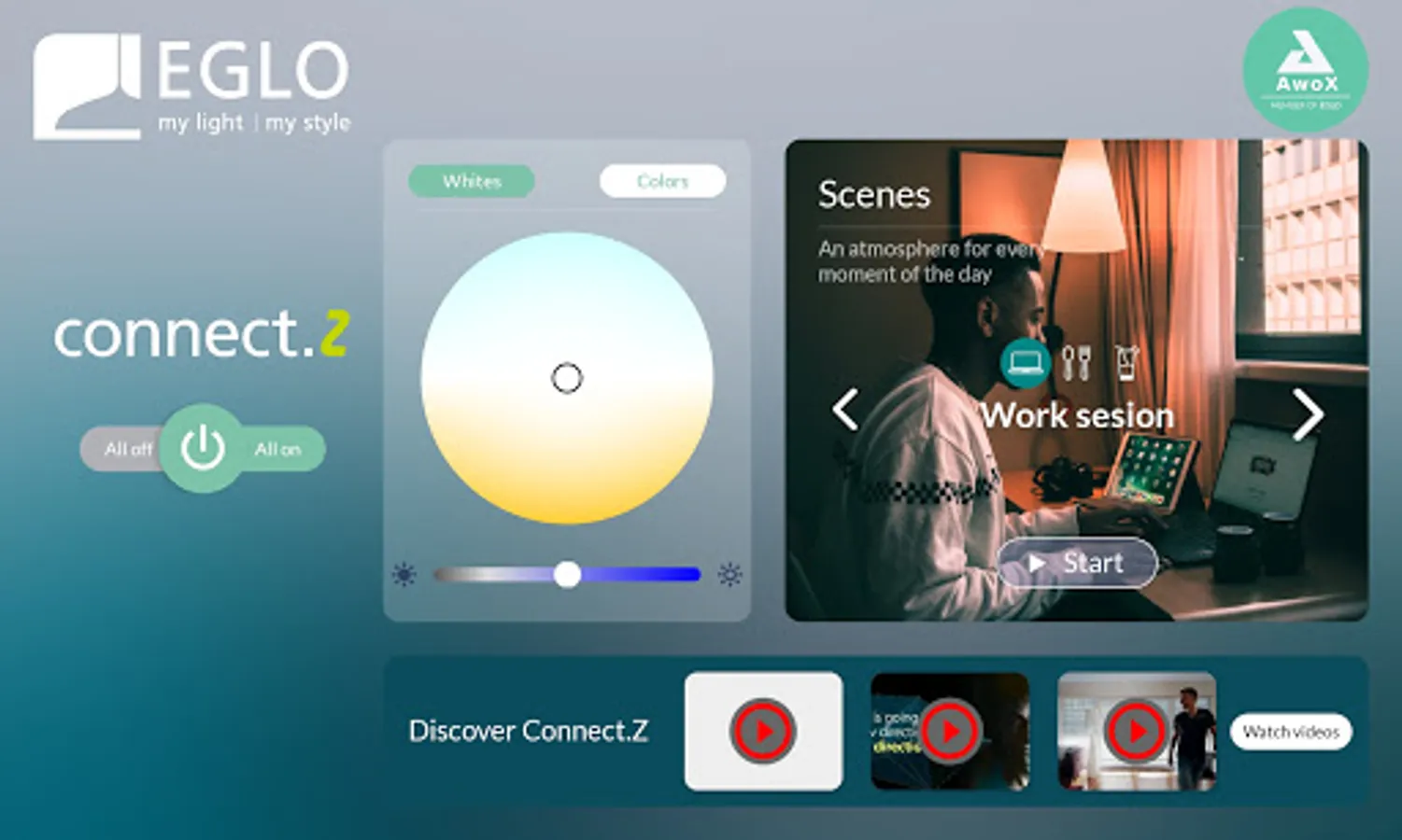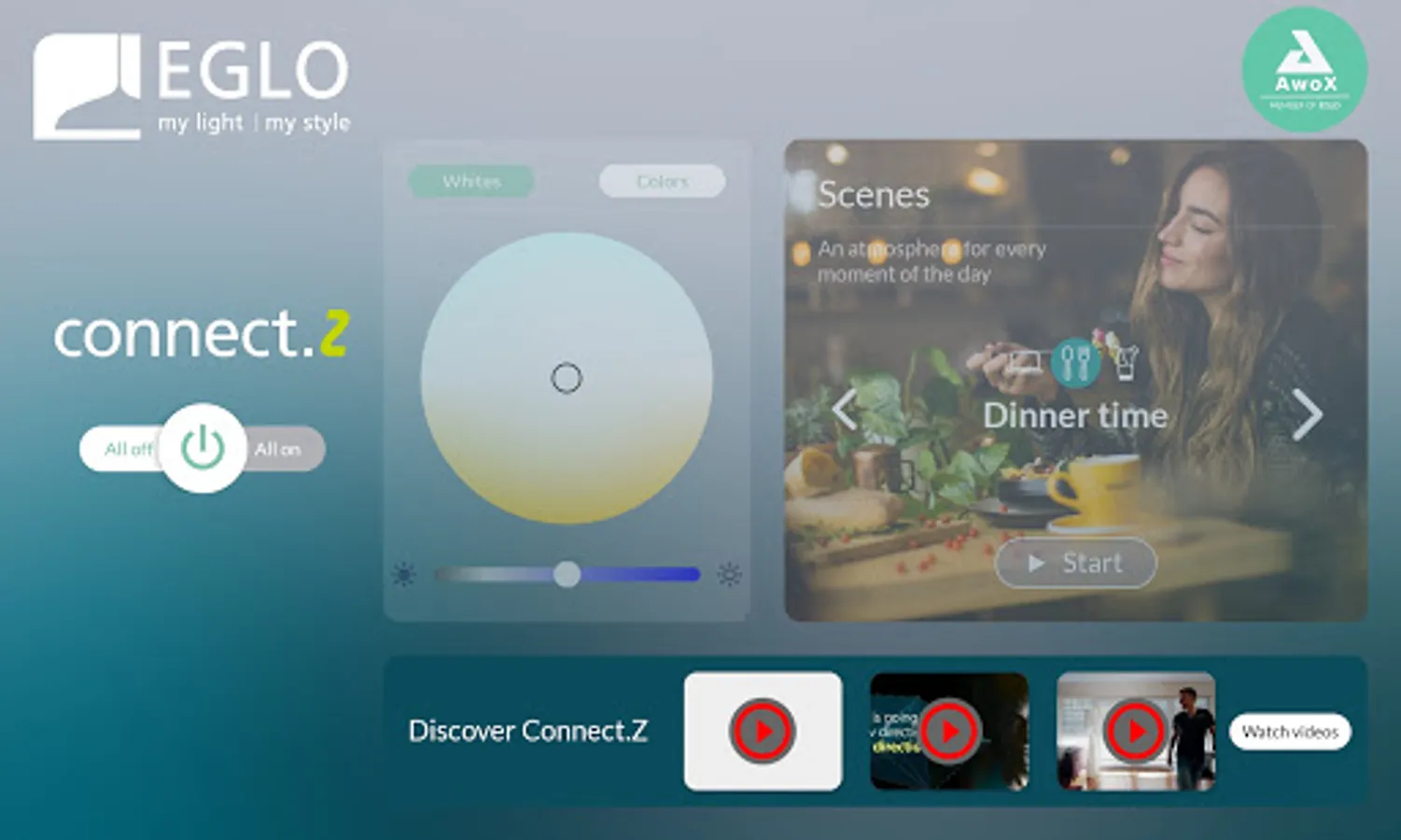 The application supports the Eglo Connect.Z and Crosslink.Z ranges