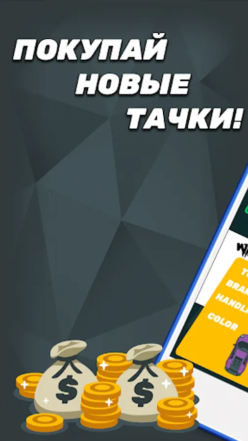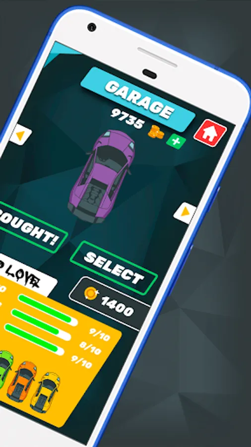 You will never get bored with such a dynamic gameplay! Sick and tired of your old car? Then do your best to earn coins and buy a new one!