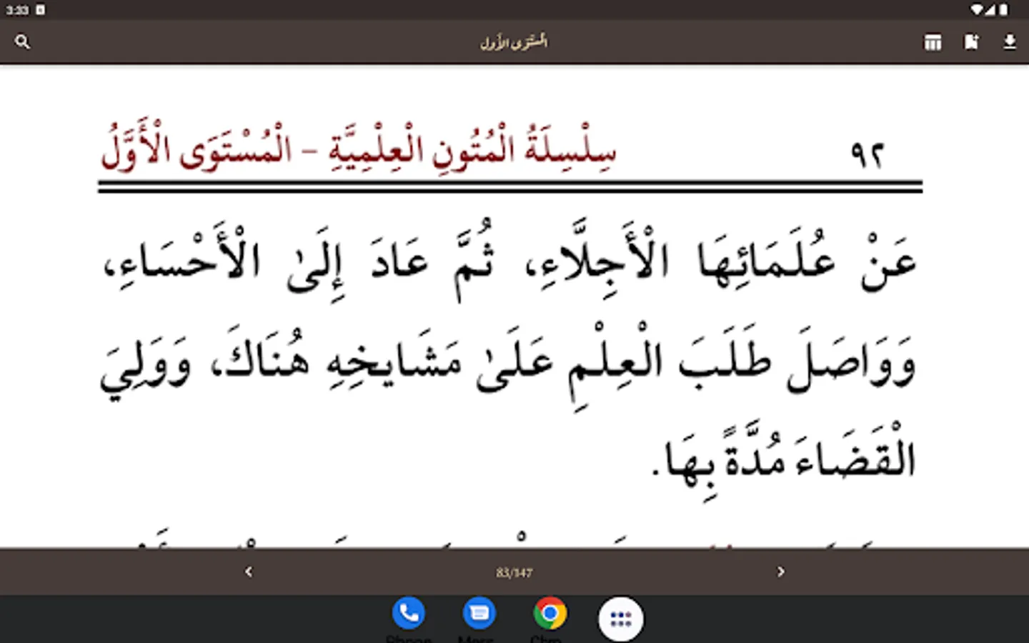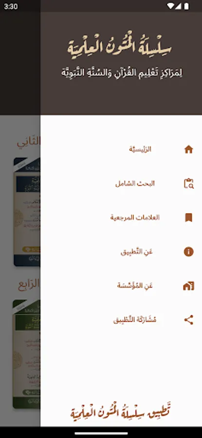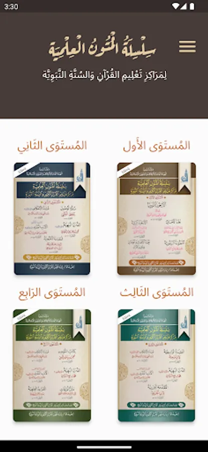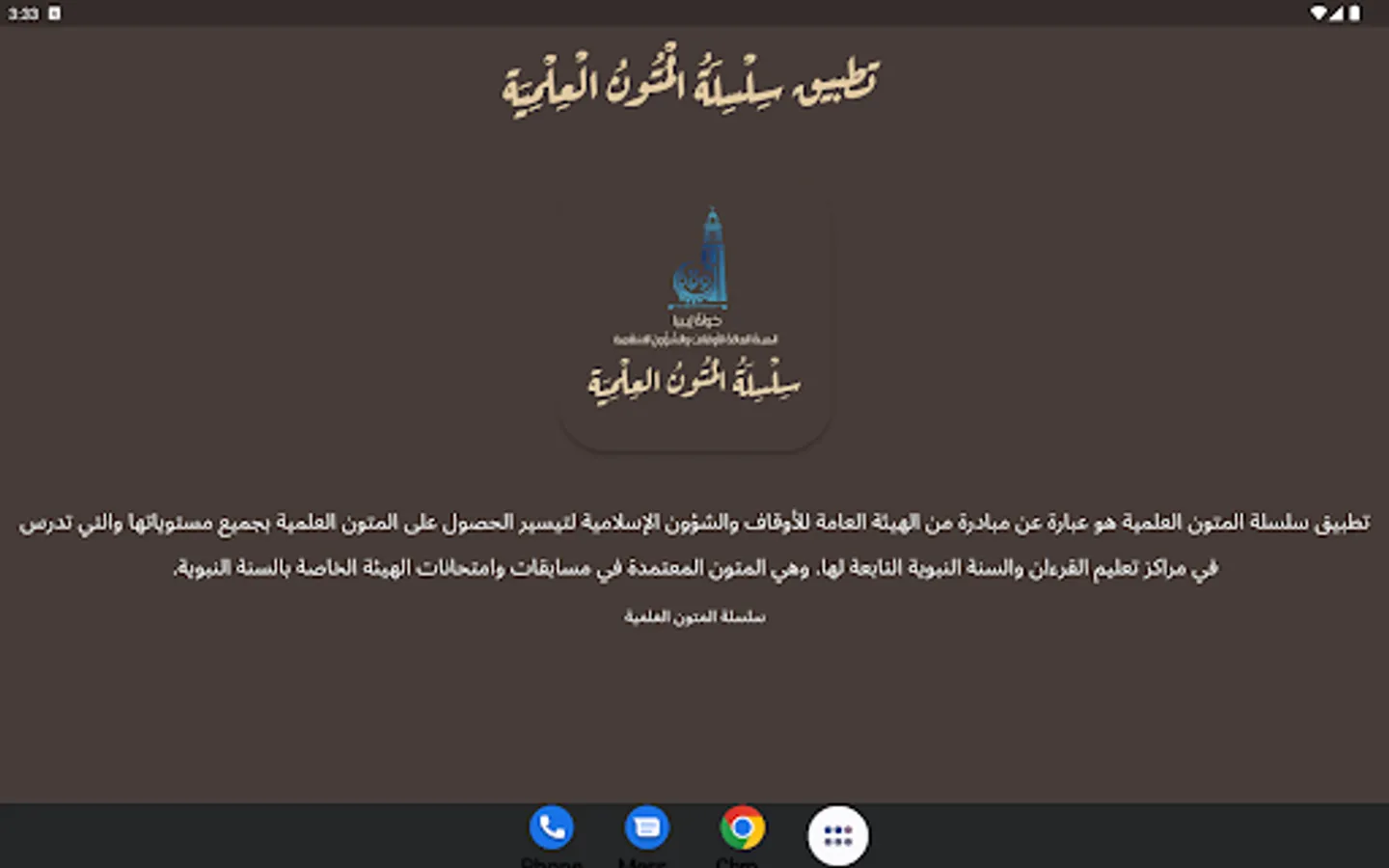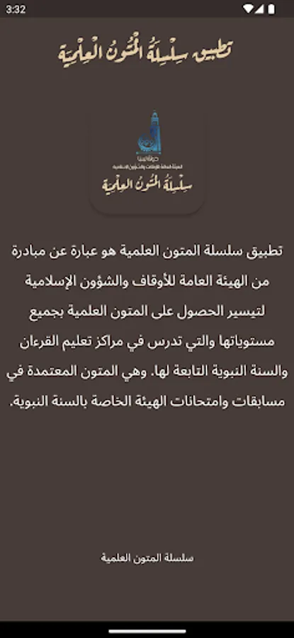 The application of the scientific text series is an initiative by the General Authority for Endowments and Islamic Affairs to create an electronic version of the scientific texts with its four levels, in addition to many advantages that the application can enjoy, such as: