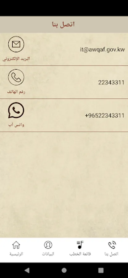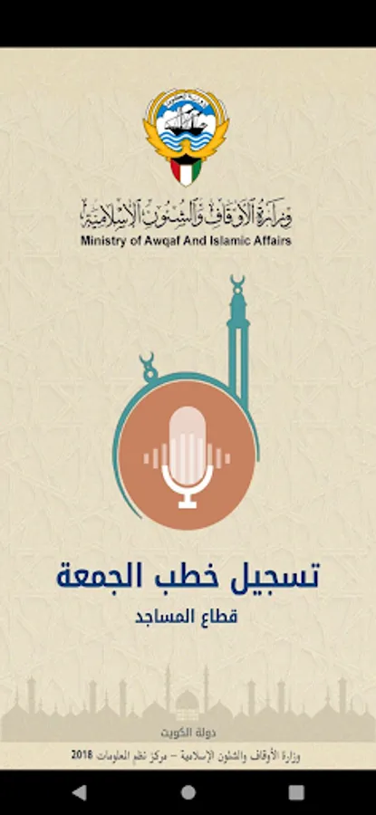 Friday sermon registration application issued by the mosques sector in the Ministry of Awqaf and Islamic Affairs in the State of Kuwait.
