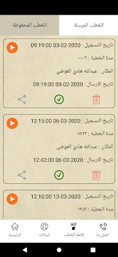 The preacher or the muezzin can view his data as well as the list of recorded speeches.