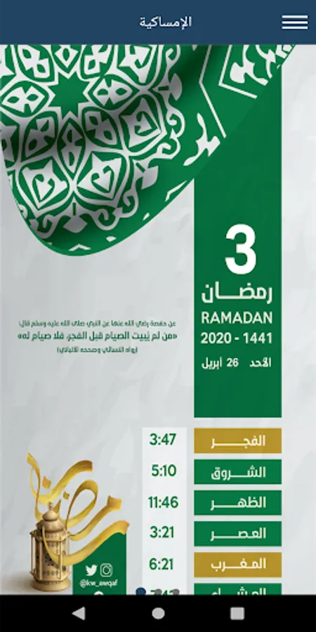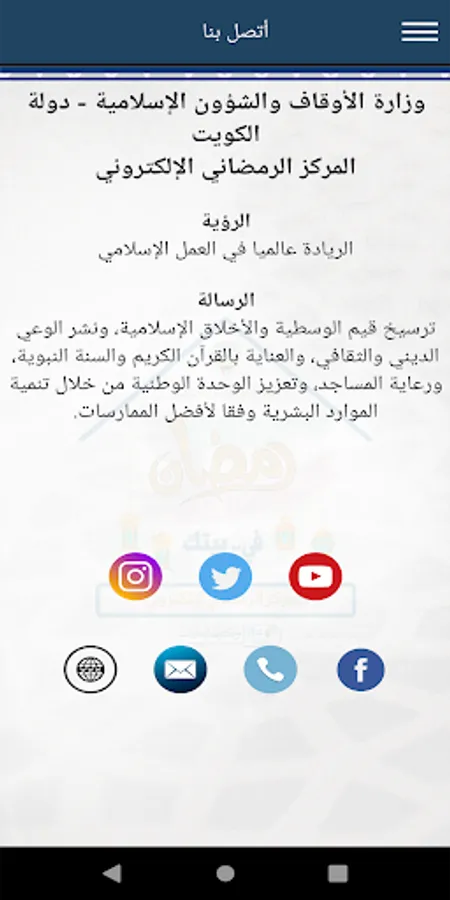 Ramadan application in your home falls under the activities of the Ministry of Awqaf and Islamic Affairs in the State of Kuwait during the holy month of Ramadan.