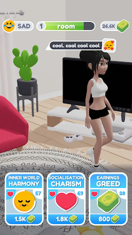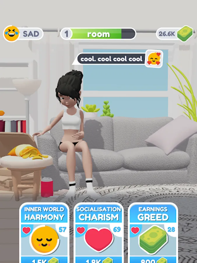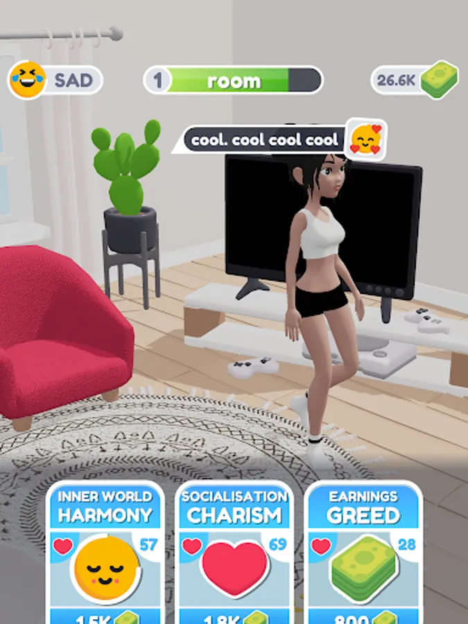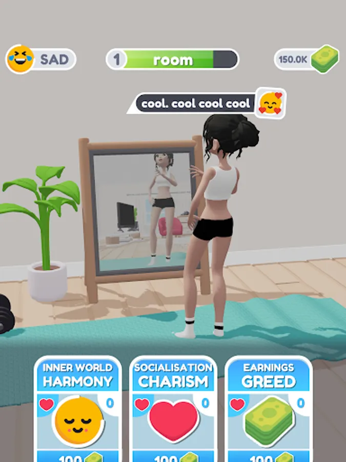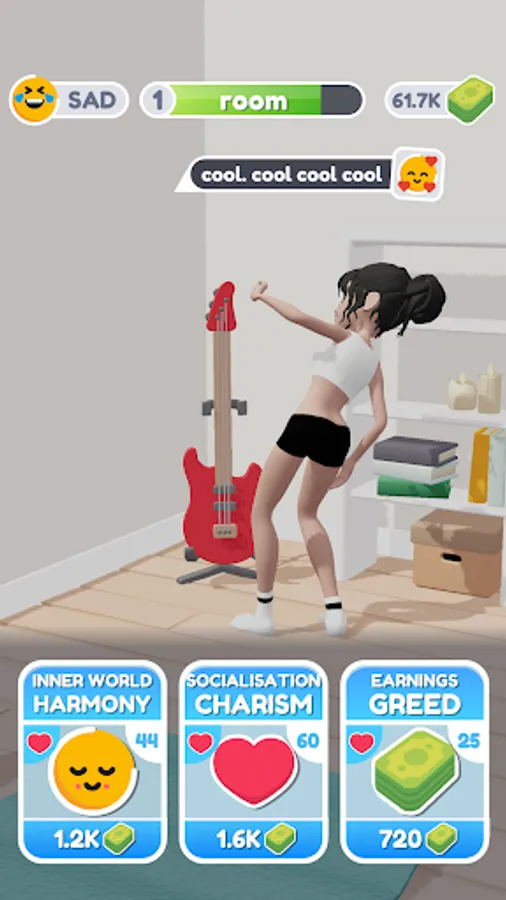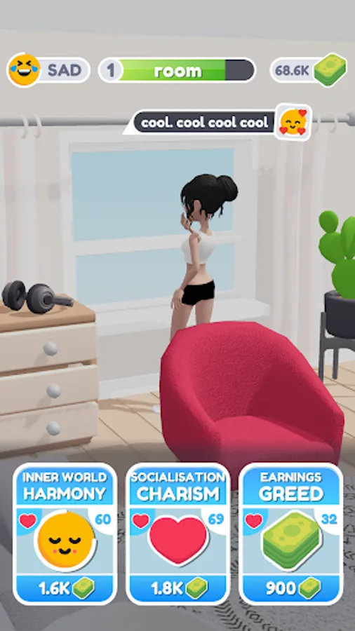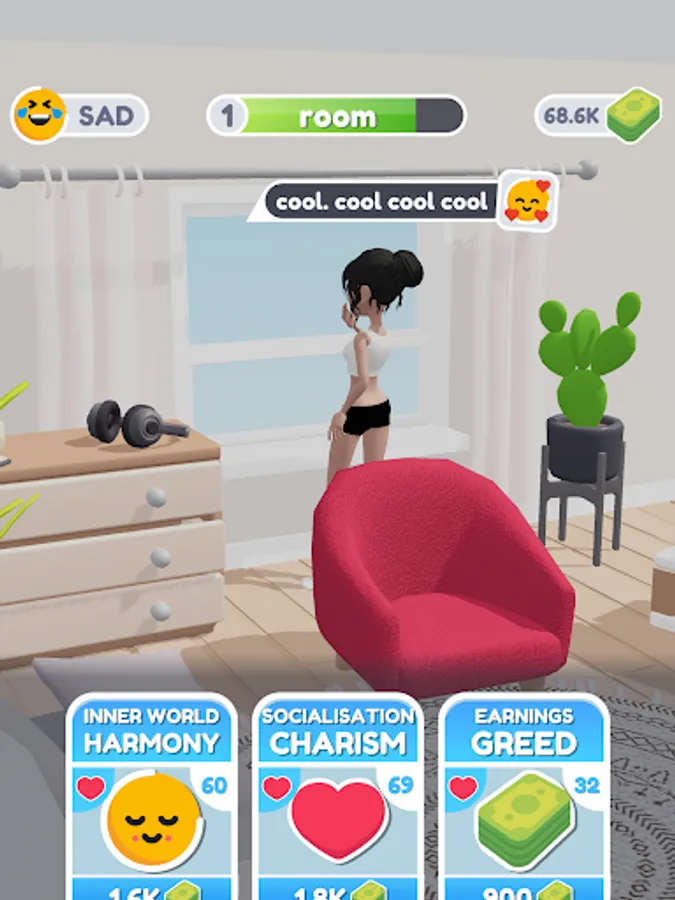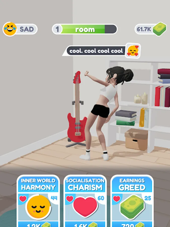 Do you ever wonder what a girl does in her room when no one is watching? In this idle arcade game, you can find out! Idle Girl is a game where you can control a girl in her room and make her do various idle activities. Each activity will increase her skills in harmony, charisma, and greed, which will affect her mood scale. The higher her mood, the more rewards you can get. But be careful, some activities will also drain her energy and will make her bored! How will you spend your time with her?