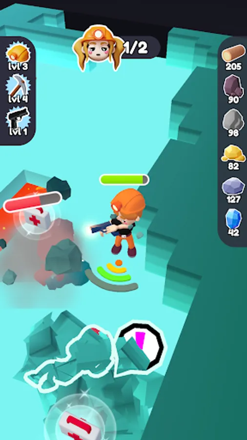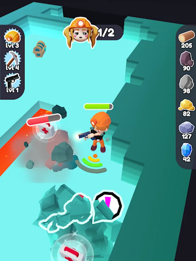 Dungeon Quest is a thrilling mobile game where you have to dig your way through the dark and dangerous dungeons. Along the way, you will encounter stone golems that will try to stop you, survivors that need your help, upgrades that will make your journey easier, and treasures to make it worth!. You can choose from different tools to dig faster and fight better. The deeper you go, the more rewards and challenges you will find. How far can you dig?