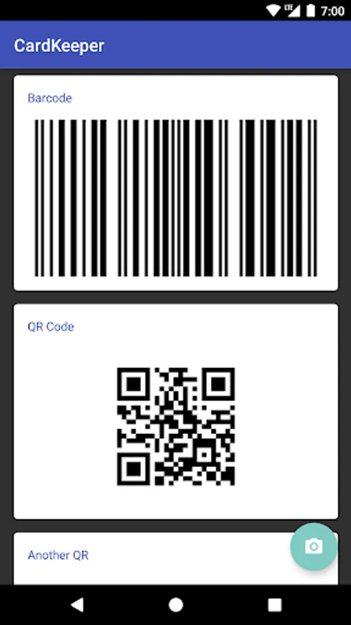 A simple application designed to help you keep track of barcodes and QR codes. Simply scan a barcode or QR code, and store it forever. Supports 17 different types of barcodes.