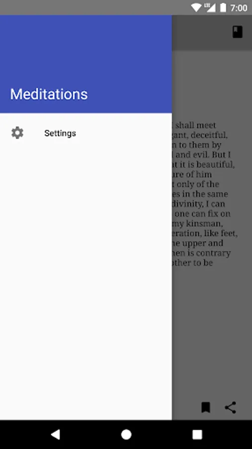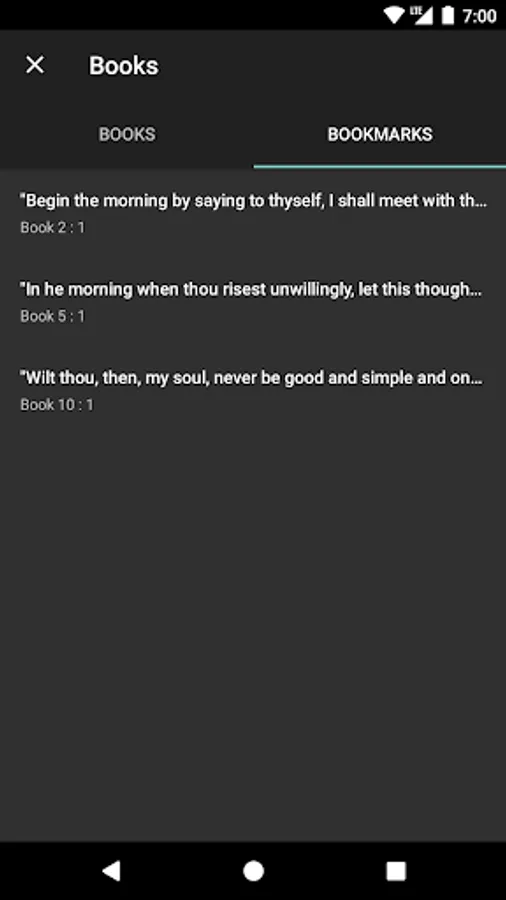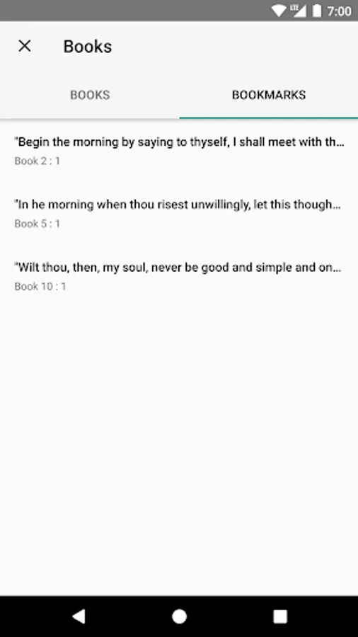 Marcus Aurelius Meditations were written as a source of guidance and self-improvement. Written across 12 books, his writings range from short sentences to longer musings. Although he probably never intended for his work to be published and read by anyone other than himself, his views and musings provide an insight into stoicism and stoic philosophy. With this simple, easy to use app, your daily dose of stoicism is just one tap away.