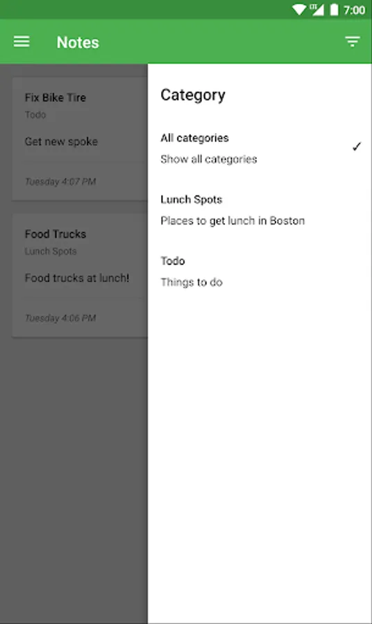 - Sort your notes by categories. Whatever you want to take notes on, easily find everything