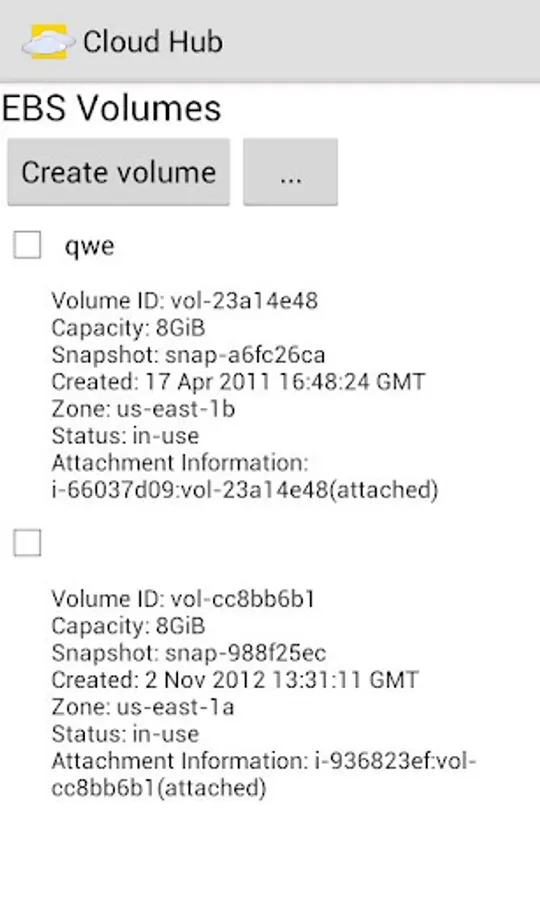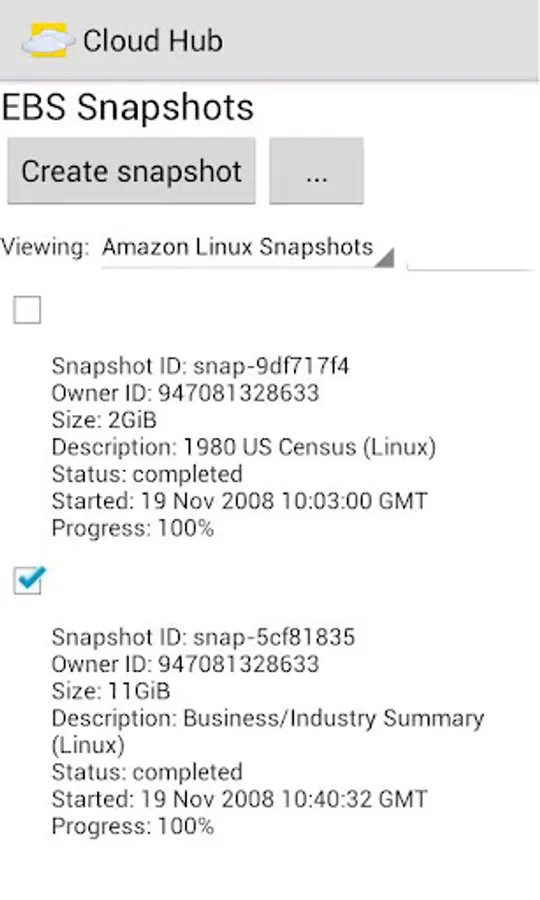 Cloud Hub is an Android application for managing Amazon Web Services cloud. It uses Amazon API to provide simple interface for Amazon EC2, SNS, RDS, Route 53, S3, CloudWatch and CloudFront cloud computing services. Application supports multiple accounts and passwords storage.