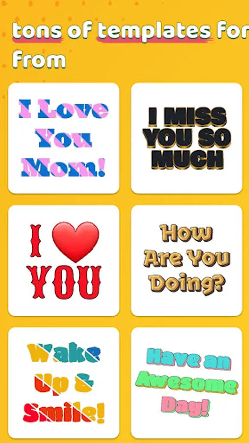 Create stunning whatsapp text stickers in seconds by choosing from our pre-made animated templates by simply adding your own text, change the font, the color and add stroke to the text and voila! We offer a huge variety of pre-made animated text stickers templates that allow you to personalize your Stickers for WhatsApp WASticker even further.