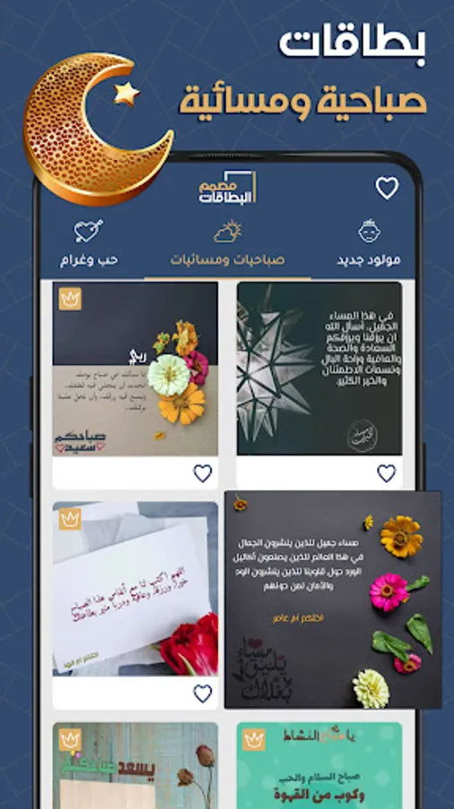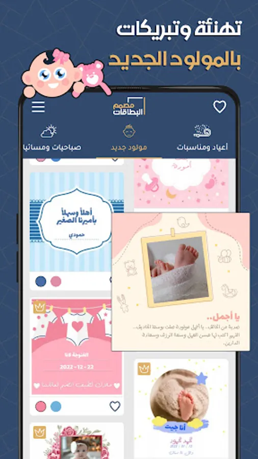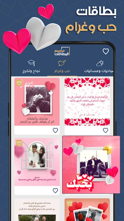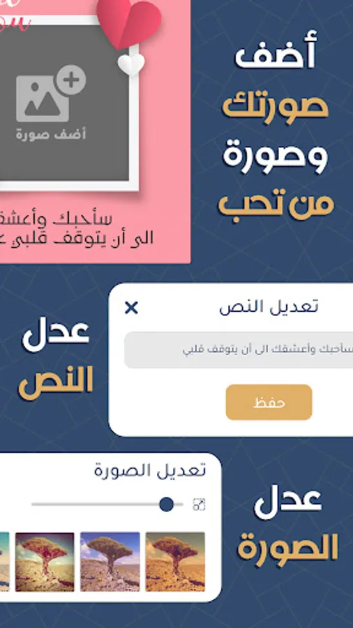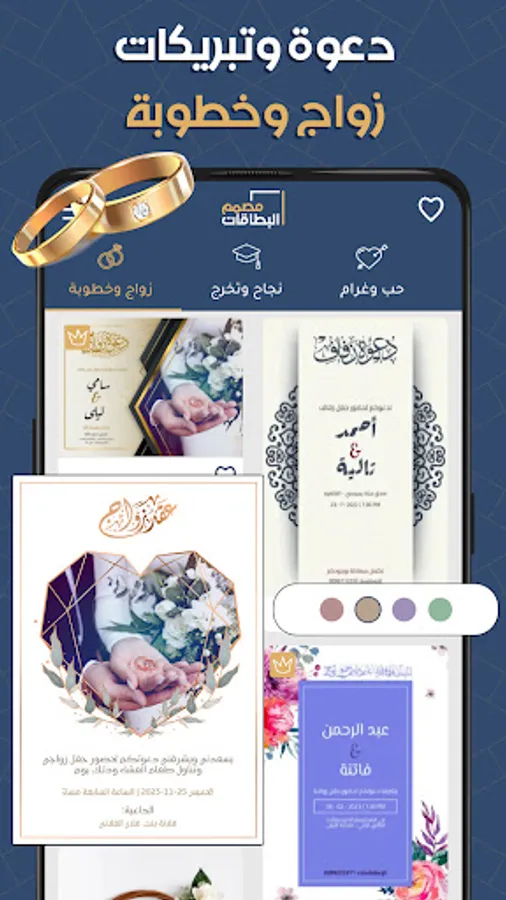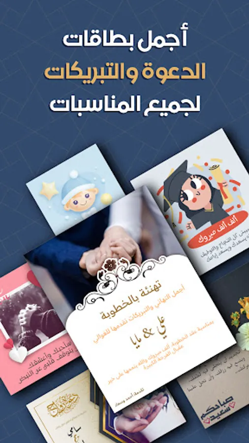 Through the card designer, you can design wedding invitations, design greeting cards for the one you love, design love images, greeting cards, baby shower invitation cards, and greeting cards very easily, as you only have to write the text that you want in the invitation cards, and the application takes over editing and designing the image