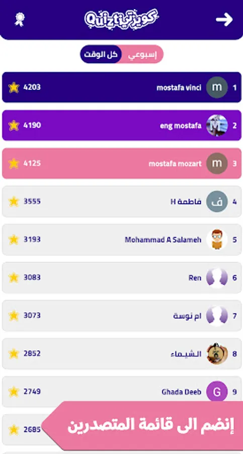 By continuing to win competitions and earn points, you will be on the leaderboard. There is a weekly leaderboard and a general leaderboard in quisti. At the end of each week, the winners' names are entered into the previous week's winners list.