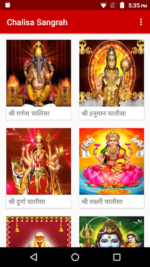 Chalisa Sangrah has inbuilt text and audio for all CHALISA.Chalisa Sangrah has following chalisa's -