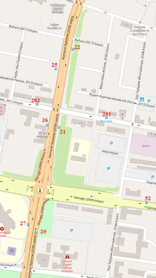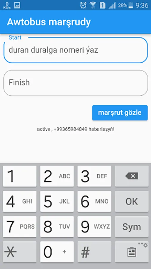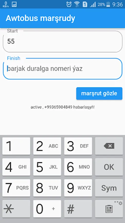 The application shows you which bus you need to take to get from one place to another within Ashgabat.