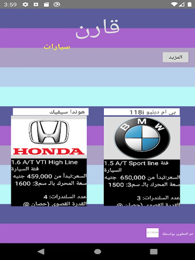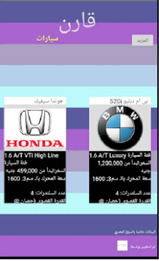 تطبيق مختص بمقارنة السيارات بالسوق المصري بالاسعار و بعض التفاصيل الهامة, an app focused on comparing vehicles in Egyptian market.
