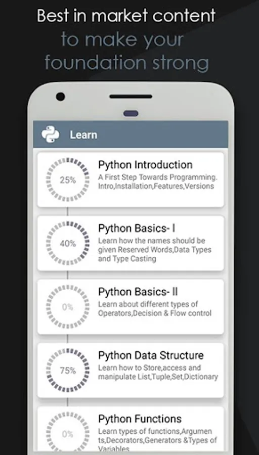 Learn Python like a pro download the app now and enhance your python skills to next level.