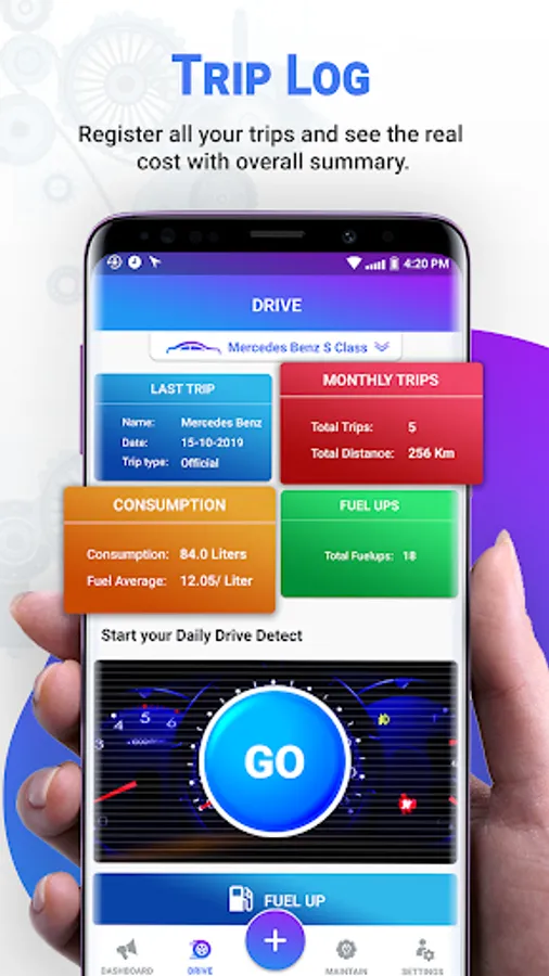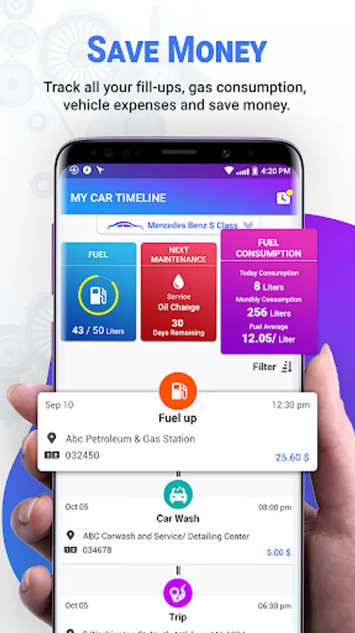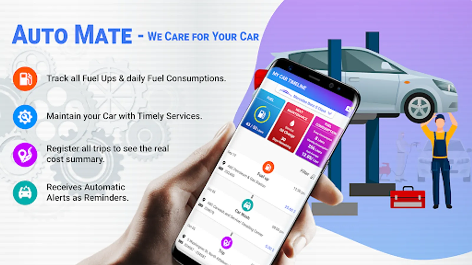 -Auto Mate reminds trip log, car maintenance & fuel consumption.