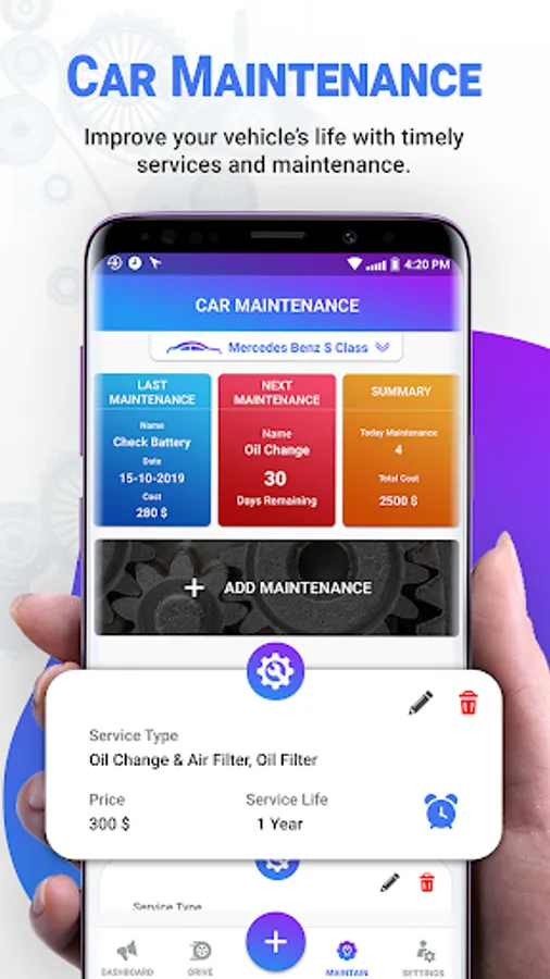 Car service is especially designed auto maintenance app for car drivers. With auto maintenance, drivers track car service and car fuel log to compare gas prices with help of expense tracker app.