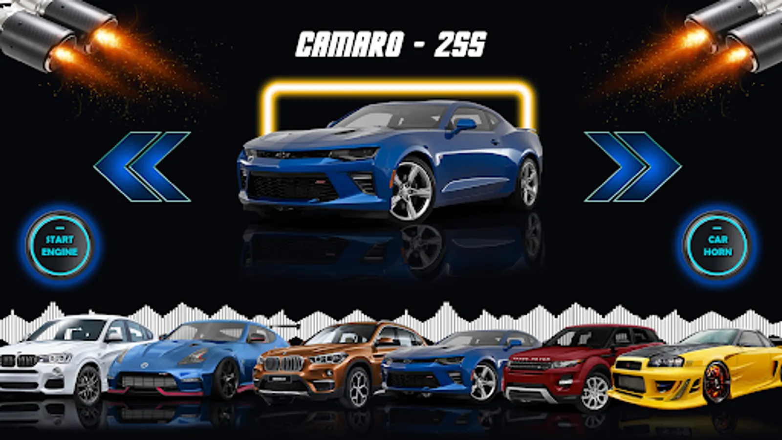 The buttons in sports car simulator has feature like gas pedal and GPS speedometer which are added additionally in this supercars sounds app to create an extra amusement resource for supercars sounds lover. Car engine sound effects give you control of brakes and muscle car acceleration with gas pedal that helps in speed limit app. Colorful and muscle car acceleration are available for users to make them feel real by operating supercars sound app. From sports car simulator to muscle car acceleration, you will find every single thing that can entertain you in free time. Gas pedal in this car engine sounds effects and supercars sounds are to give a real feel by giving gas exhaust with supercars sounds.