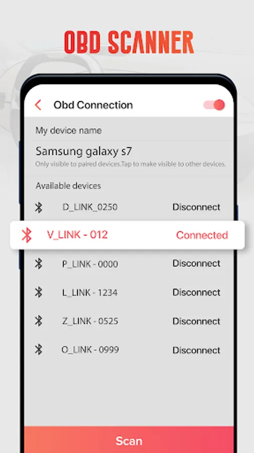 2- OBD Connection (User can see information retrieved from OBD Device including Trouble Codes).