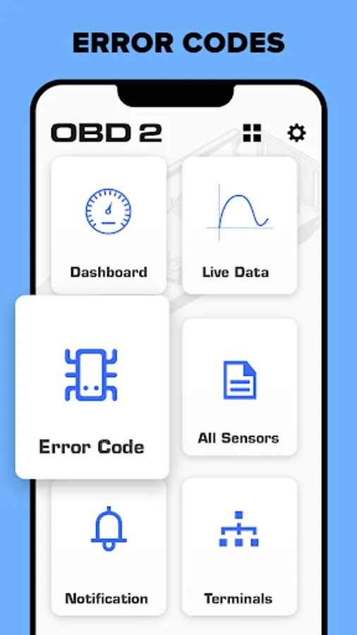 4- An icon on the dashboard which will direct user to the screen where he can see all information coming from OBD2 scanner.