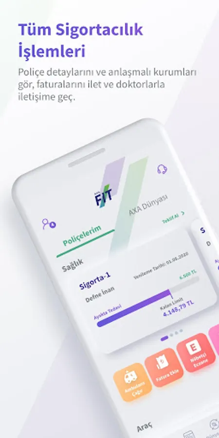 In addition to many insurance transactions such as policy viewing, damage tracking, contracted institution viewing; Many features such as water and calorie tracking, pedometer, medication tracking, healthy and good life suggestions, customizable exercise programs, meeting with specialist doctors, finding a pharmacy on duty are waiting for you! Moreover, even if you are not an AXA Sigorta customer, you can use AXAFit for a better life.