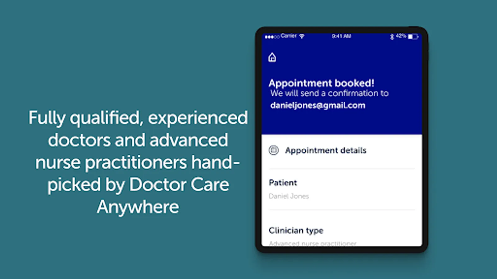 Appointments are with qualified doctors and advanced nurse practitioners; experienced healthcare professionals handpicked by Doctor Care Anywhere. You can even choose whether you see a male or female clinician.All our clinicians are UK-registered with either the General Medical Council (GMC) or Nursing and Midwifery Council ( NMC). They are also specially trained in virtual consultation skills, ensuring that you receive the highest quality of care during your consultation.
