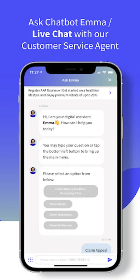 4. Connect with live chat agent or chatbot via “Ask Emma”