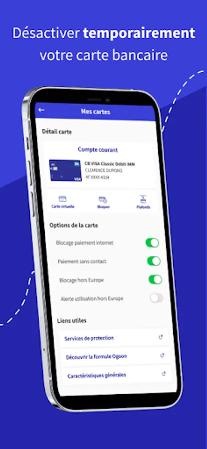 • Temporarily deactivate your bank card to block any withdrawal or payment authorization transaction. Reactivate it whenever you want,