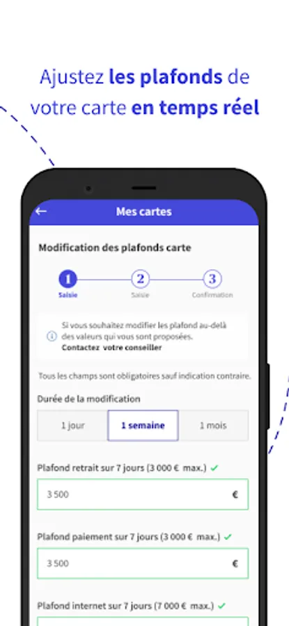 • Instantly change your limits for purchases and withdrawals from your bank card as needed,