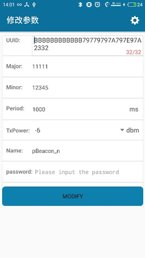 Search for information on the UUID, Majorid, Minorld, period, and other information, which can modify the values of these parameters, and then save it to the device