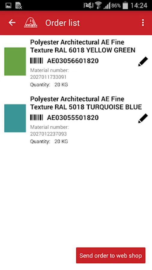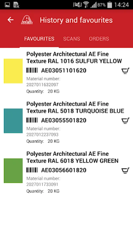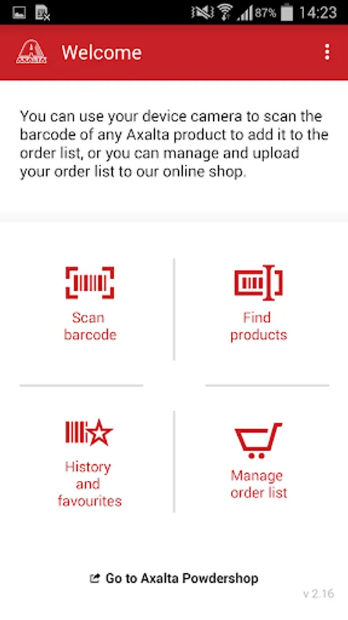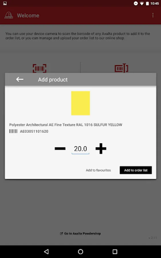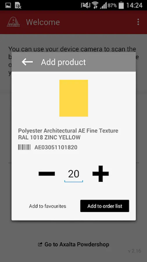 The Axalta Powdershop App enables Axalta powder products to be ordered by scanning the barcode and sending it directly to the Axalta Powdershop when you are online.