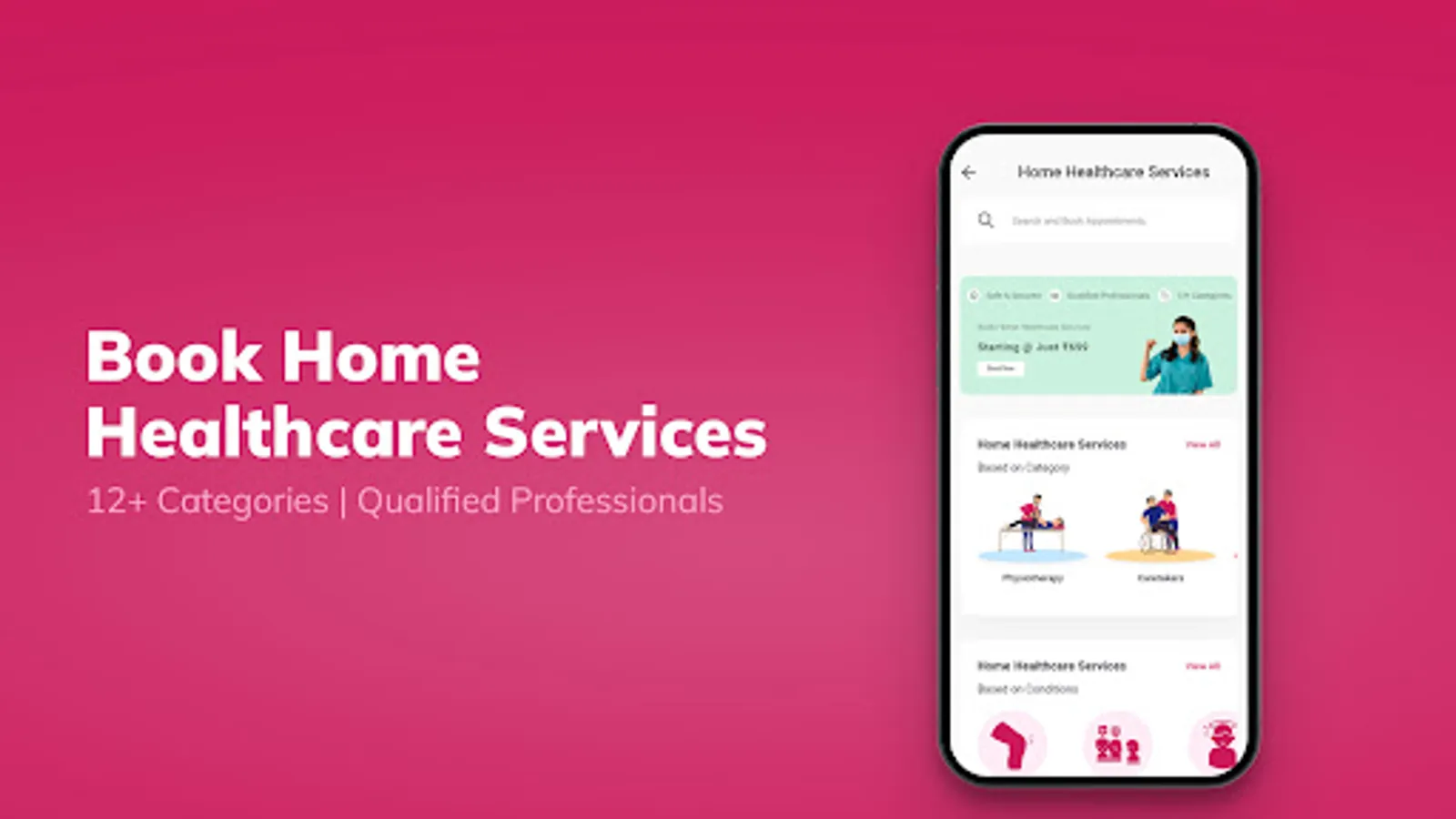 Some of the home healthcare service categories are nursing support services, speech therapy, physiotherapy, elderly care, mother & baby care support, mental wellness support & many more