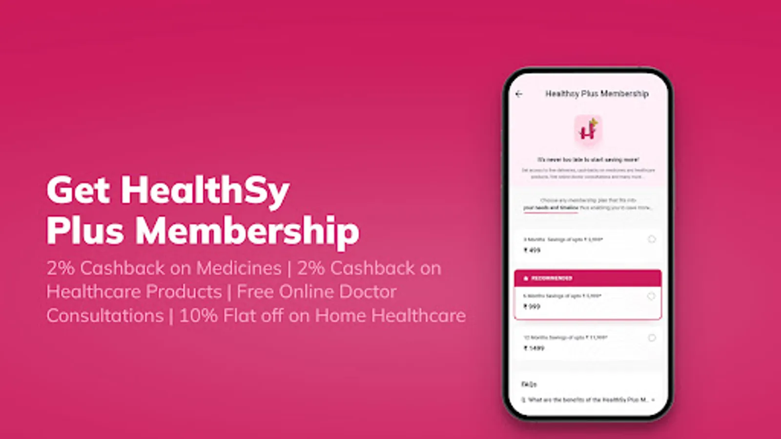 • Extra 2% cashback on all medicine orders with a HealthSy Plus membership