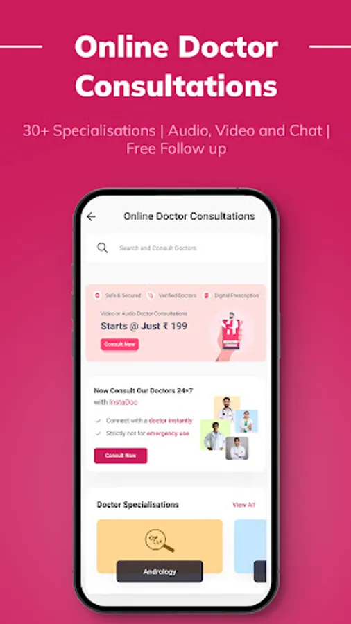 • InstaDoc 24*7 doctor consultations