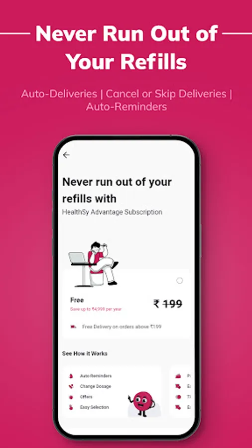 • Order medicines with HealthSy Advantage Subscription to never run out of refills
