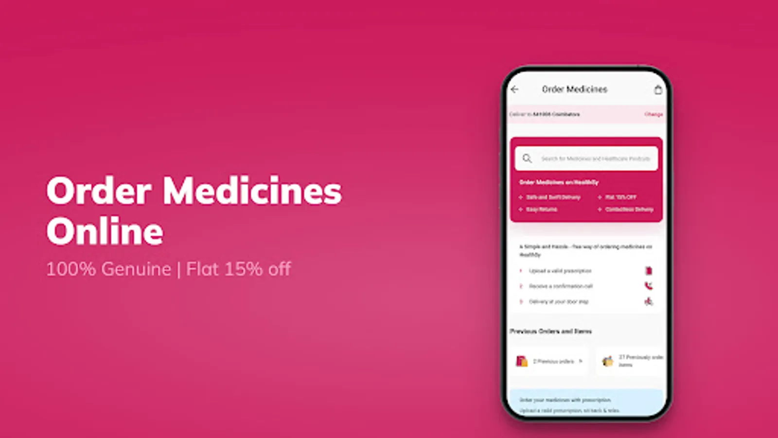 We are active in over 1000+ cities and towns including all the major cities such as Delhi NCR, Mumbai, Bengaluru, Chennai, Kolkata, Hyderabad, Pune, Coimbatore and many more. Order medicines and healthcare products and get delivery within 24–48 hours in select cities & towns.