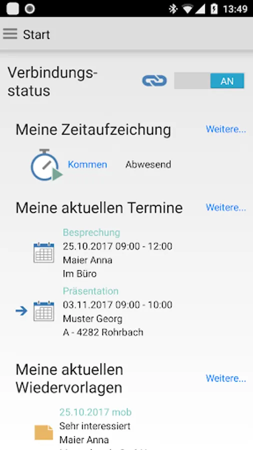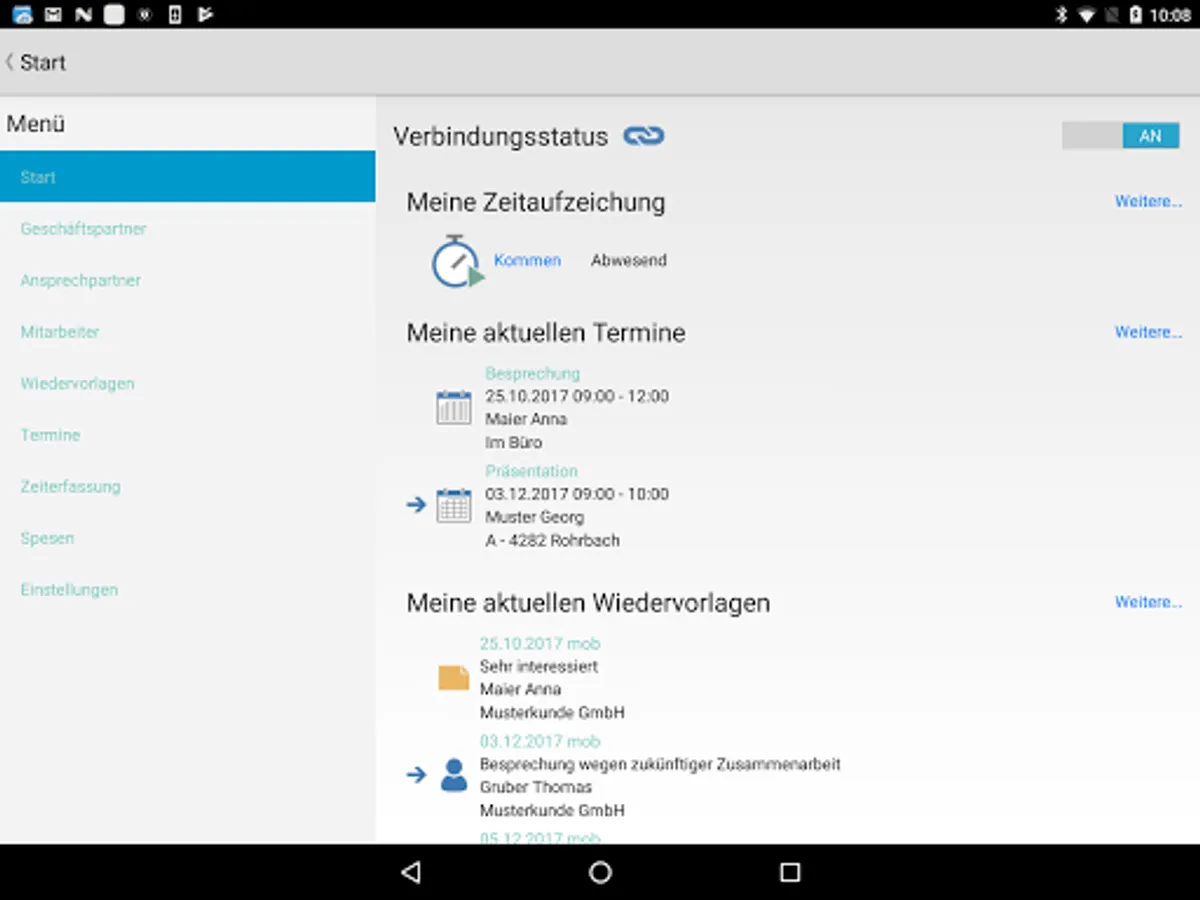AXAVIAmobile connects the AXAVIAseries database with your mobile device. Edit address data, reminders, appointments, expenses and Zeitaufzeichnungnseinträge from your Android smartphone or tablet.