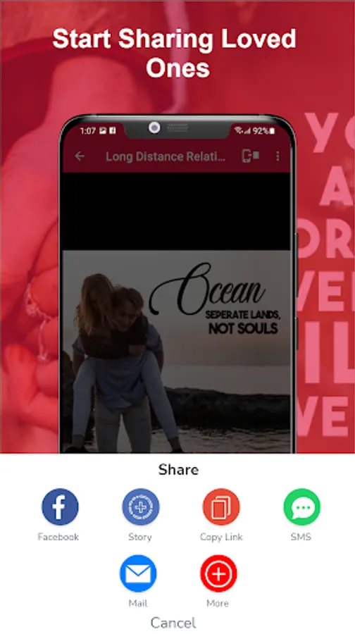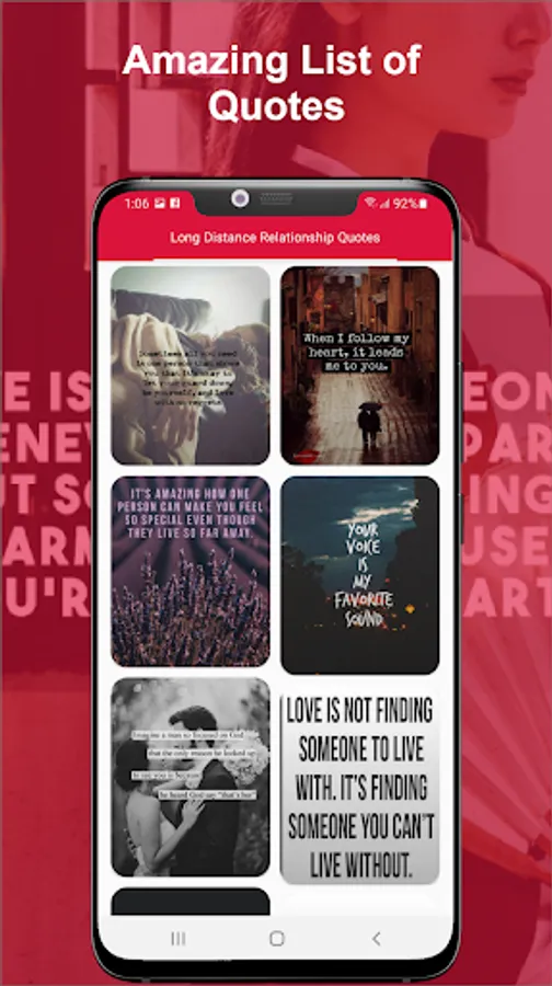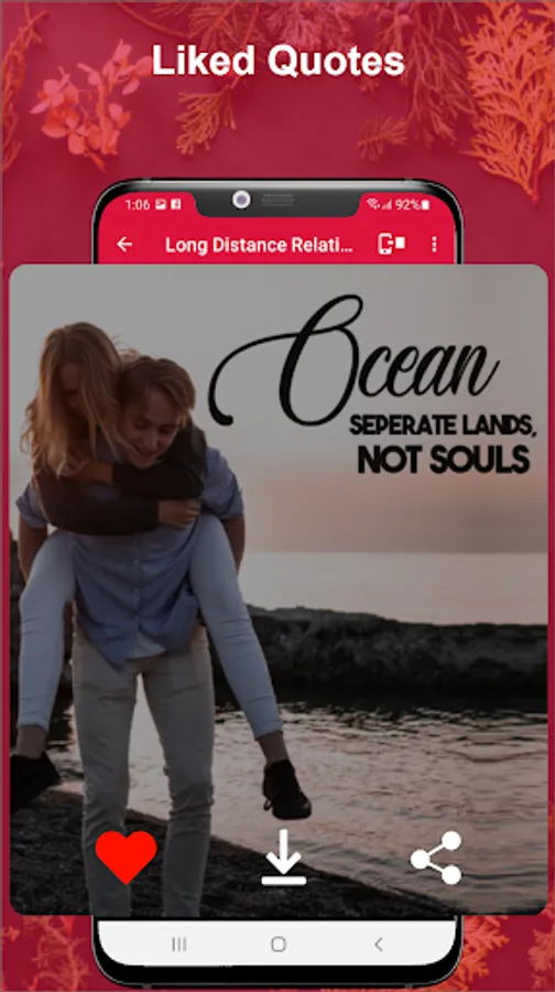 Long Distance Relationship Quotes allows to download Quotes to your mobile and share your lovely quotes to your friends on social networks including Facebook, Whatsapp, Instagram and Twitter.